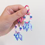 All pieces are handmade by Momo in Barcelona, Spain. Materials are carefully sourced through in-person thrifting around the world, deadstock vintage finds, and new materials ordered in small batch. These beads are combined into one of a kind playful and wearable jewelry.